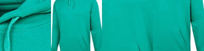 Pullover hood, Rib neck cuffs and hem, drop shoulders, boxy fit