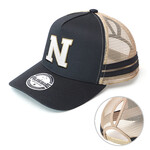 Low profile, five panel cap, internal mesh structure support, flat peak