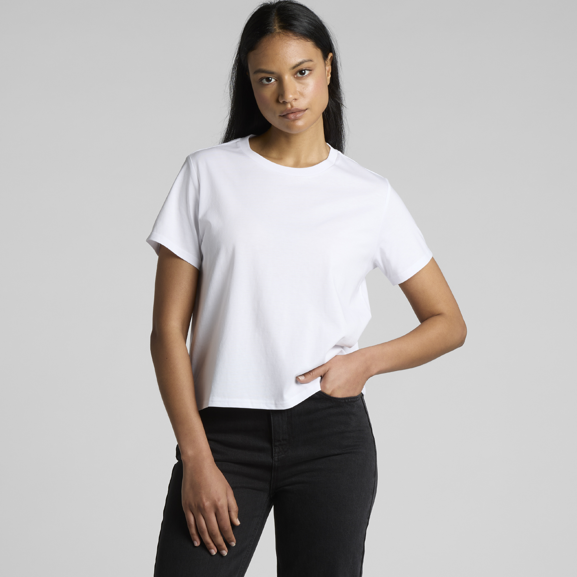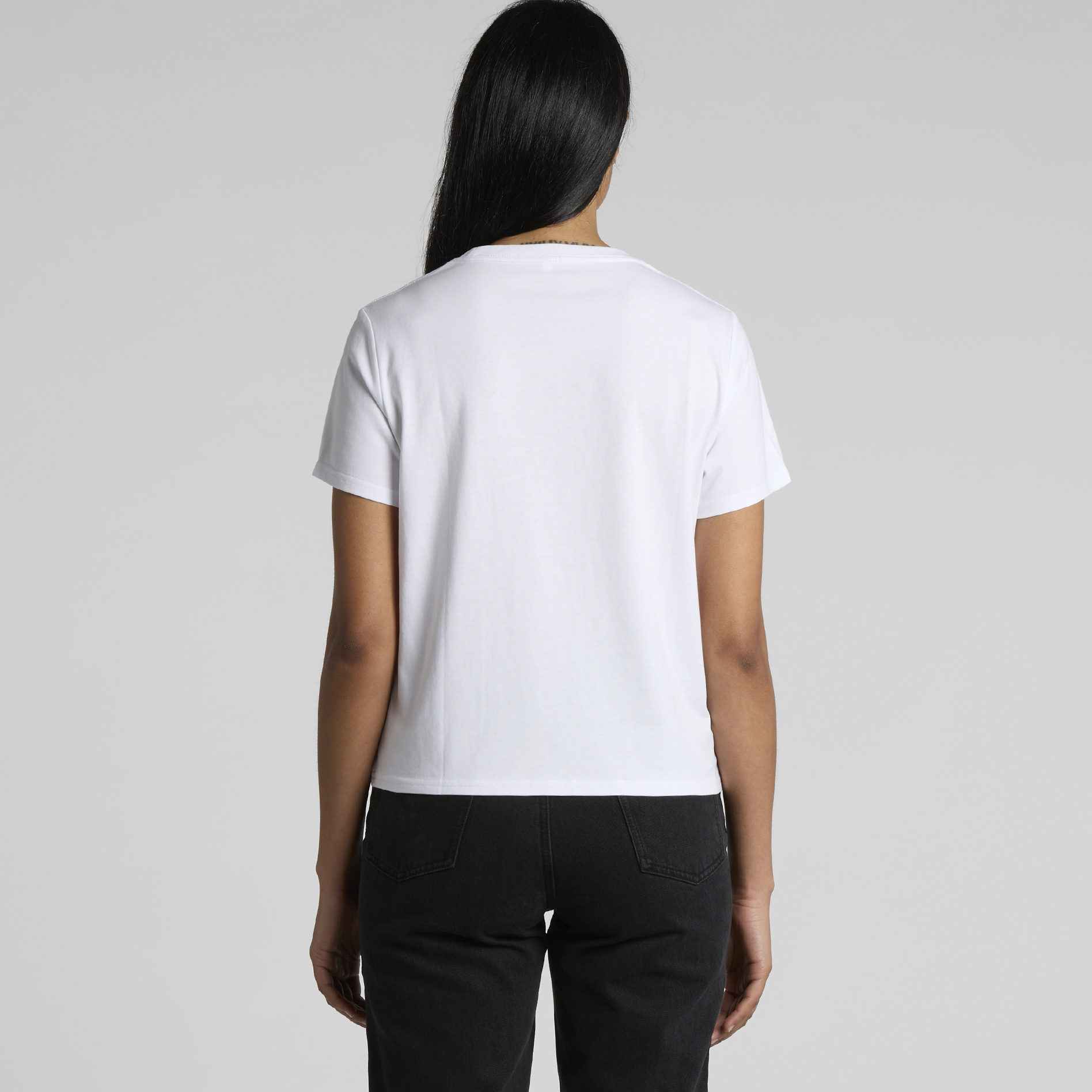 Construction: Shorter body approximately 8cm shorter than our standard Maple Tee, neck ribbing, side seamed, shoulder to shoulder tape, double needle hems, preshrunk to minimise shrinkage